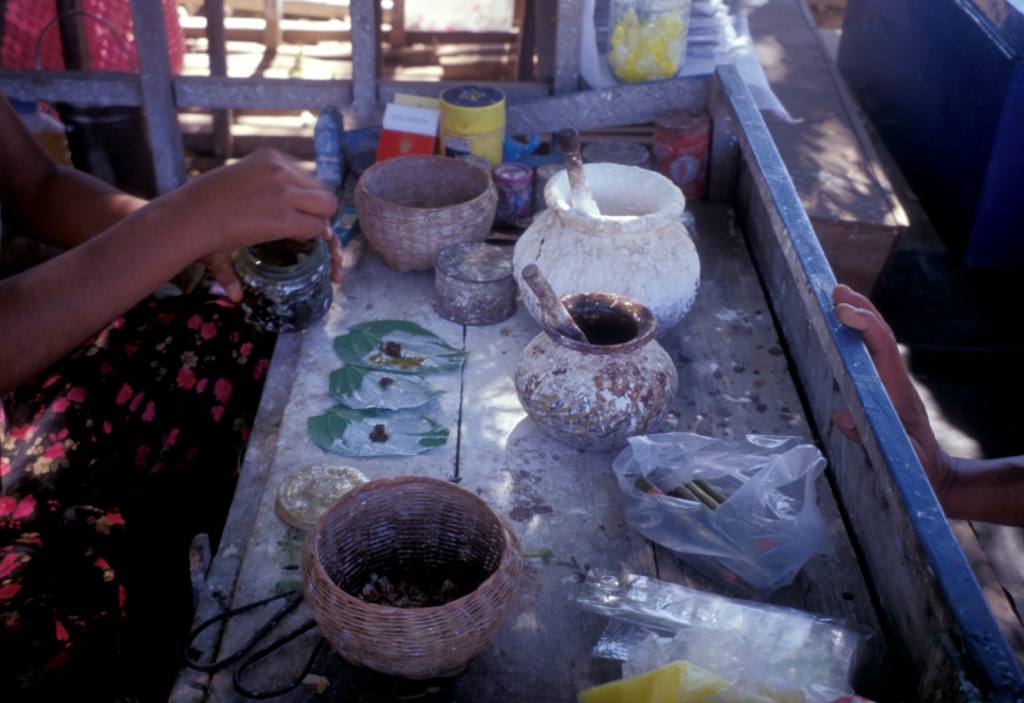 Bethel nuts, enriched with a lime mixture and wrapped in fresh green leaves, are chewed from early morning to the evening. Red masticated leftovers are discharged pretty much everywhere, with the exception of the holiest places inside the temples. Chewing reminds me of coca from South America, but the walnut effect is apparently milder and the residue is repulsive.