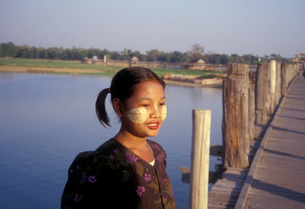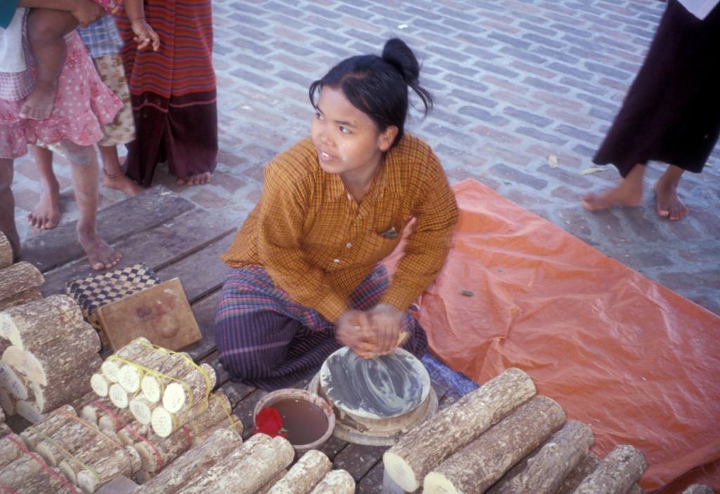 Women have their faces painted with a yellowish thanaka cream. It is obtained by rubbing the trunk of a special type of tree against a concrete stone. Thanaka protects the skin from strong sunlight, on the other hand makes it softer, more youthful and removes annoying rashes.