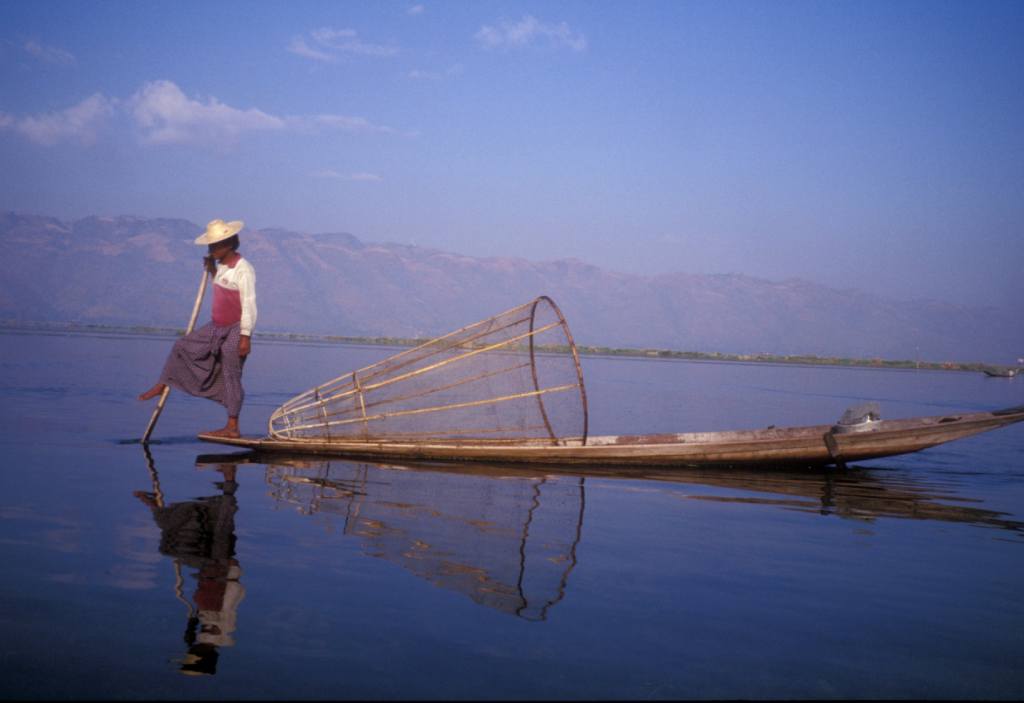 Only men engage in the leg rowing technique. Women row in the traditional manner, sitting cross-legged in the stern and using their hands to propel the oar.