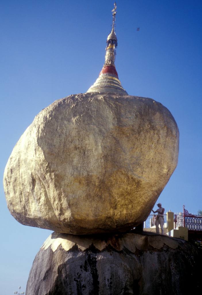 Only seven meters high stupa (Buddhist monument) would be nothing special if it was not placed on the Golden Rock, a mighty round rock balanced on the edge of a cliff at the top of Kyaikto Hill. It gives the casual observer a feeling as if it will plunge into the abyss the very next moment.