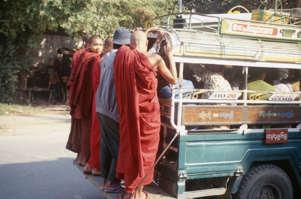 - Holding onto the roof of a pickup truck alongside Buddhist monks.