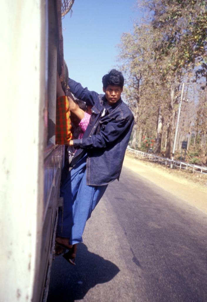 “Don’t worry. Before leaving, we will spread the load on the floor all the way to the height of the seats!” says the young boy, whose face is coated with thanaka cream to calm me down.