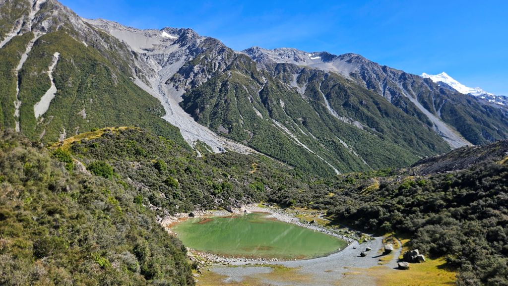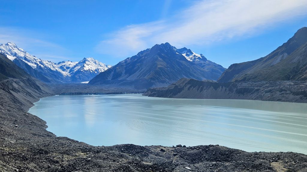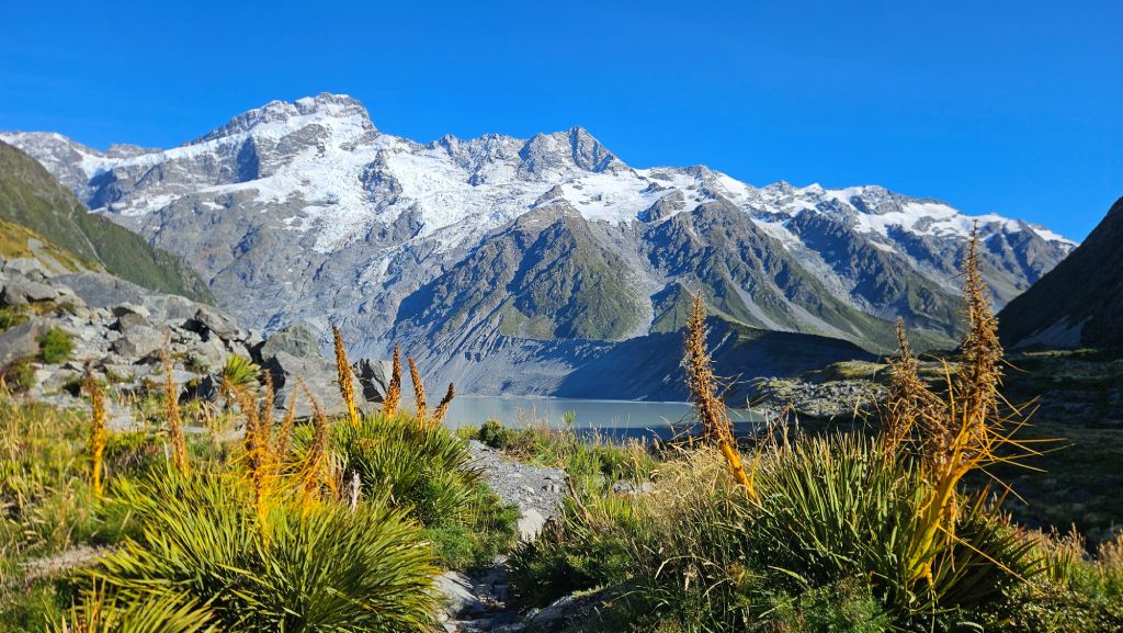 We only partially walked the Hooker Valley Track, as the second section beyond the bridge was closed due to severe erosion and safety concerns. Still, the clear morning view of Mount Cook was fantastic.