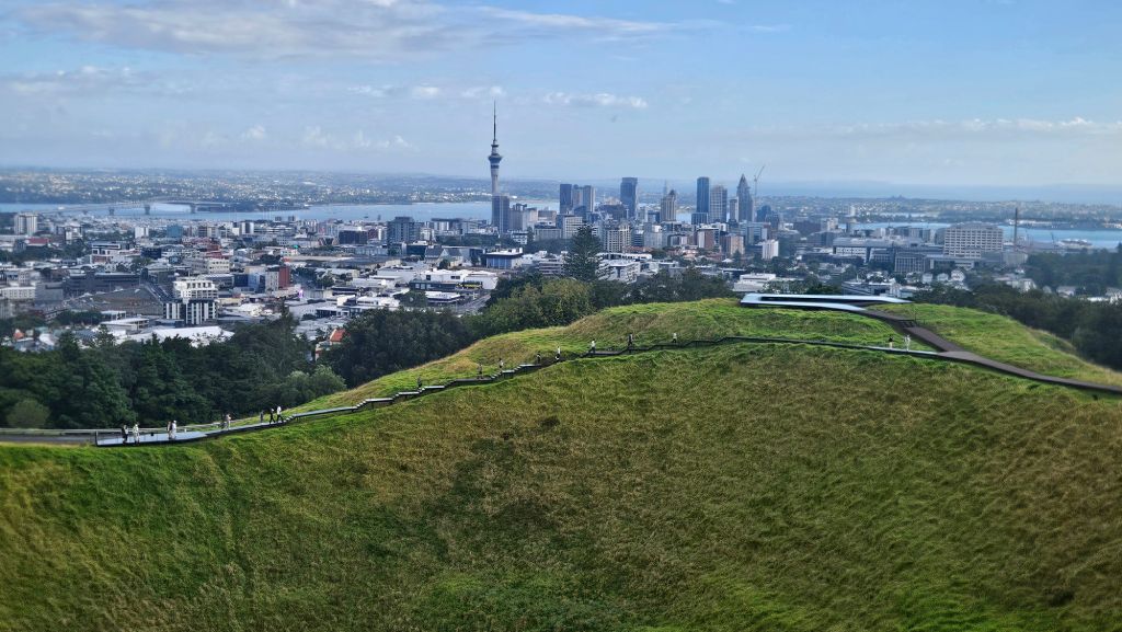 The next morning, I hiked to the Mount Eden Summit, a 196-meter-high dormant volcano. The deep grass-covered crater might not look special at first, but it offered me an excellent viewpoint over Auckland. The site is also an important Māori archaeological area, considered sacred and showing evidence of settlement in the past. I walked from the downtown on a quiet Sunday morning, enjoying the calm, with few visitors and cyclists around me.