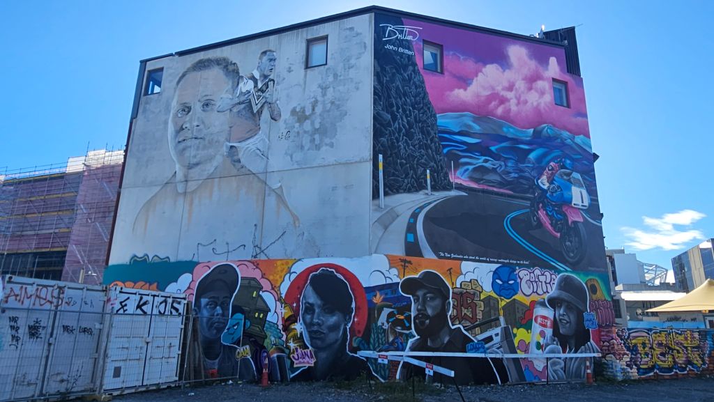 The reconstruction introduced stunning modern buildings while restoring key areas of cultural heritage. After the earthquake, temporary art projects filled empty spaces. Street art and murals became a defining feature of the city. I noticed several well-executed and large murals, including the John Brittan Mural.