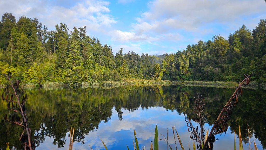 The next morning had fewer clouds, so I decided to do the Lake Matheson Walk. I still didn’t see the glacier, but walking along well-maintained paths surrounded by lush greenery was very scenic. I reached the main viewpoints and completed the loop in about an hour.