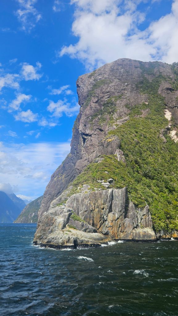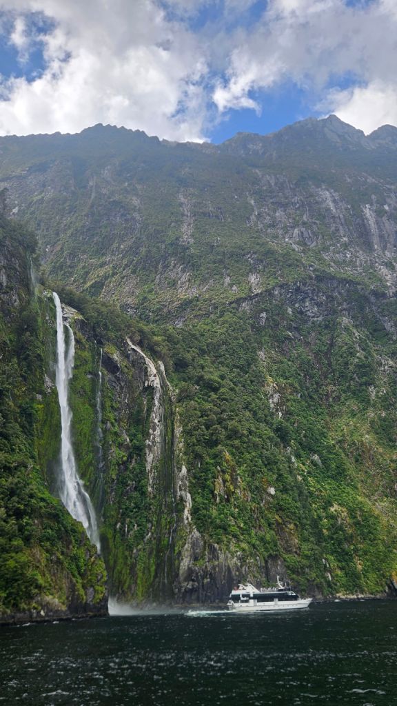 At noon, we arrived at Milford Sound, where I had previously booked a two-hour boat cruise to explore the surrounding fjords. Here, the tourism industry becomes especially obvious, as all visitors followed the same schedule. Many tour operators offer cruises on luxury ferry boats that leave along the same route just minutes apart.