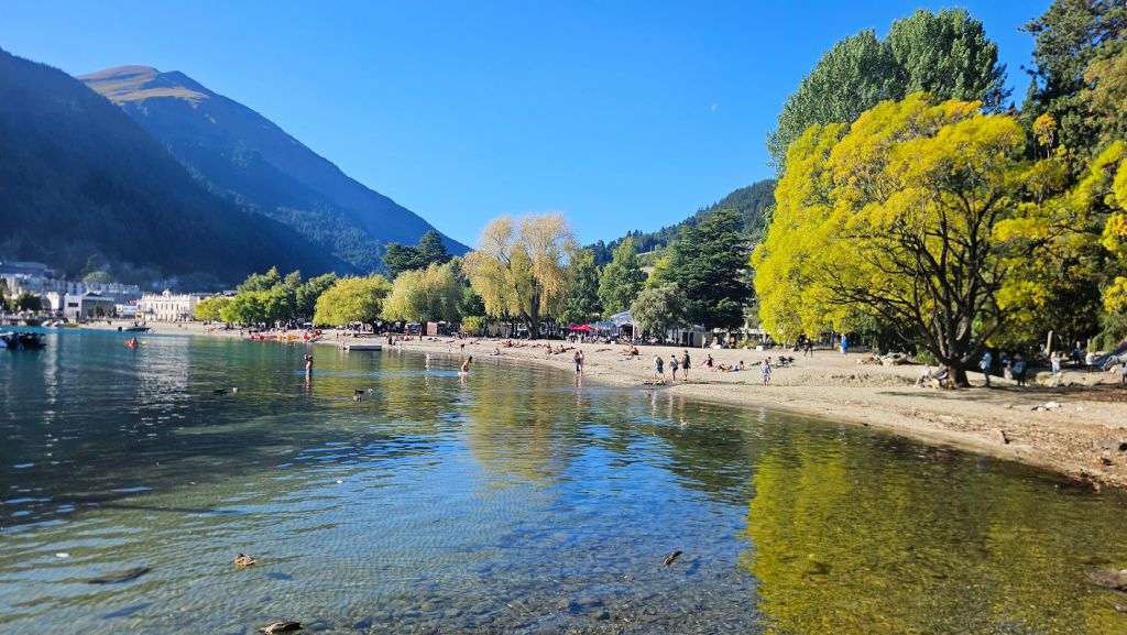 Like Christchurch, Queenstown impressed me with its orderliness, calm atmosphere, and the positive energy of its people. I noticed many active residents while walking through the well-kept Botanic Gardens with tall trees and neatly arranged rose beds.