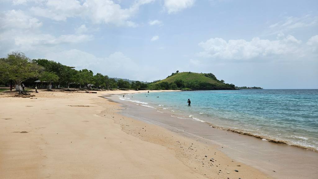 Very warm sea, soft, white sand, a dozen of other tourists, a bunch of locals selling drinks. When I swim in the sea, an elderly woman comes by on the beach, gathering dry wood to cook dinner later.