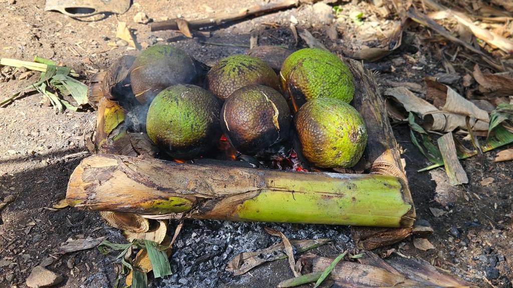 After choosing breadfruit pure, I manage to taste breadfruit in three forms: cooked in a fire and peeled as a rustic version of Ribeira Peixe, fried in thin slices at Roland Islands and as pure in a gourmet restaurant at São Tomé town. All forms remind of potato or yuca (cassava), but the flavors and textures are very different among themselves.