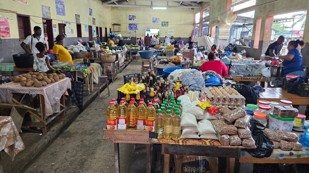 Very little cars, only a couple of decent restaurants, few motorbikes driving up and down empty streets. The central market, organized in a roofed building, provides a limited offer of local products: bananas, papayas, pineapples, some vegetables and fish.
