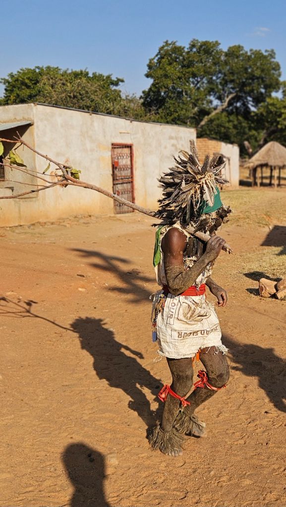 Ms Elke also organized a participation on a traditional Ghost Dance event in a nearby village. The ritual of Gule Wamkulu is performed by Chewa People in Zambia, Malawi and Mozambique. Dancers wearing elaborate masks and costumes made of wood, straw, and pieces of cloths, embody spirits, animals, ancestors and symbolic figures.