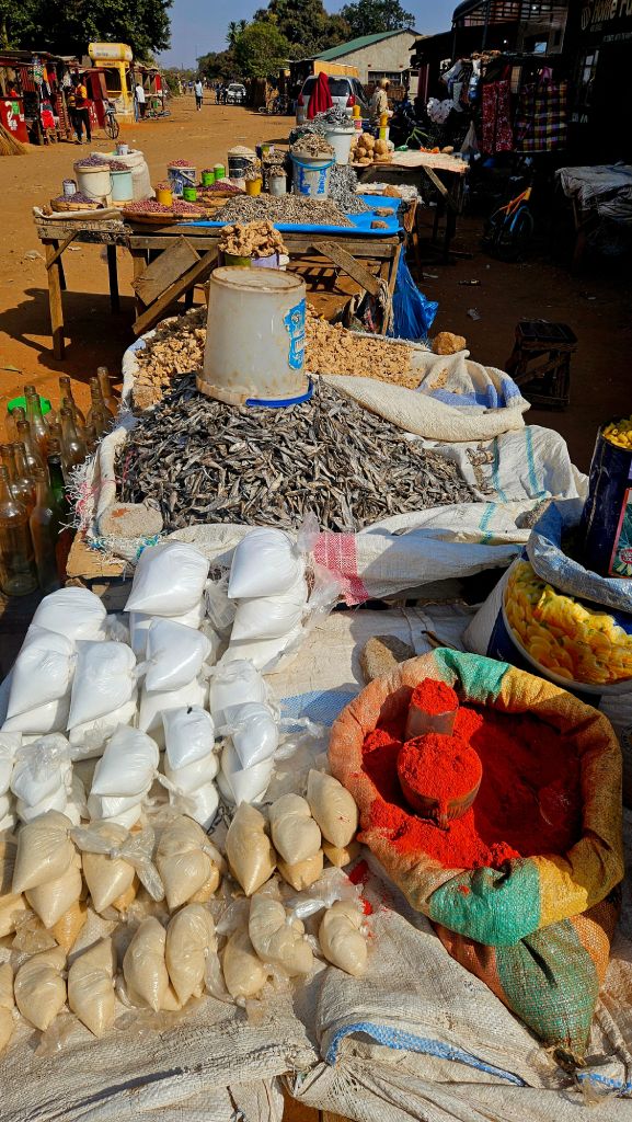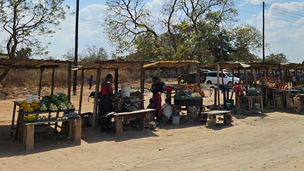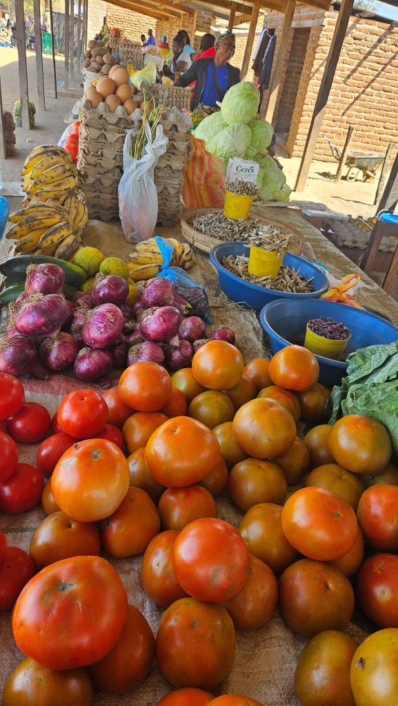 Visiting Zambia’s roadside markets was a real pleasure and one of the highlights. Fresh vegetables, roasted or boiled maize, local dishes like nshima, rice, vegetables, chicken, beef stew, and sometimes fish were always available. Each set of stall tends to specialize. For example, one sells only tomatoes, another potato, and a third onions.