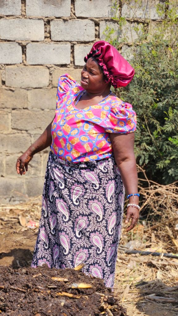 During our visit, we had the opportunity to see their work up close. Together with members of the organization, we visited a new project site. We helped set up a compost bin, build a small pigeon house and an efficient clay stove for cooking.