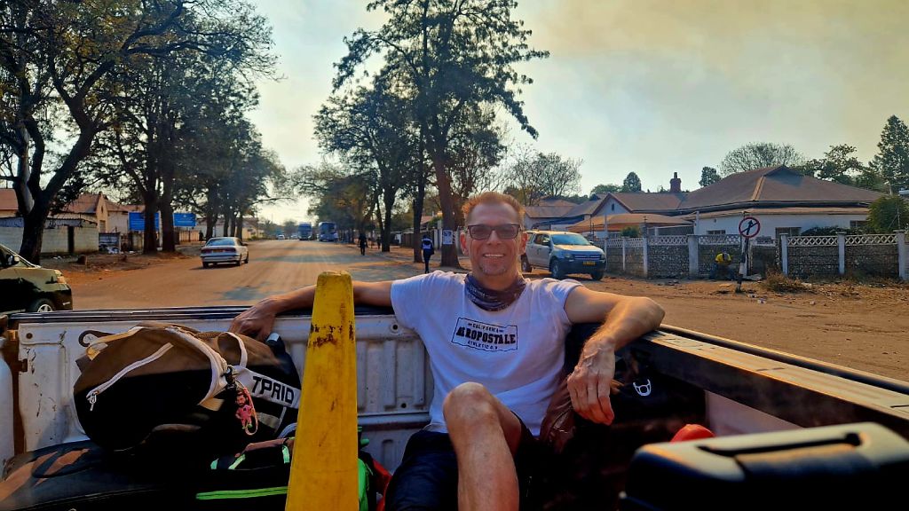 Since there wasn’t enough space in the car for all of us, I climbed onto the back of the truck. I settled comfortably and enjoyed the ride in a police pickup around Bulawayo.