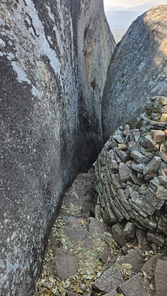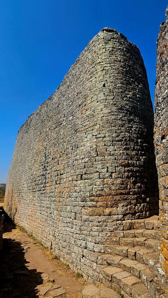 After descending from the granite hill, we stopped at the Great Enclosure, the largest and most impressive structure. The biggest ancient stone building in sub-Saharan Africa consists of dry-stone walls, some over 11 meters high and 250 meters in circumference. It was built without concrete from precisely cut granite blocks.