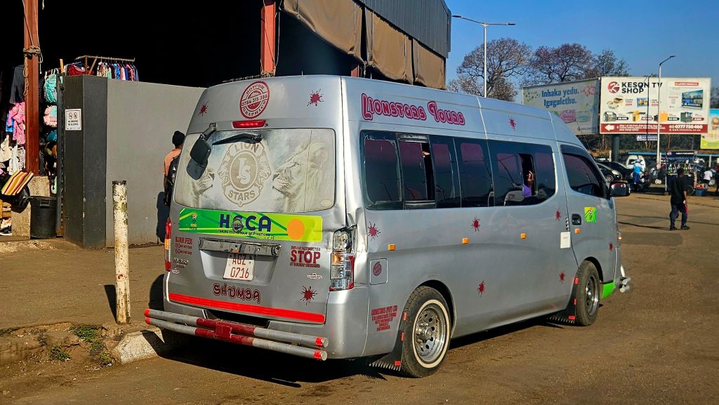 From Victoria Falls to Bulawayo, I took a large bus with five seats in each row. After a short while, the asphalt disappeared. The dusty road was full of potholes, with some stretches under construction. Without air conditioning and with clouds of dust filling the cabin, I arrived at my destination dirty and tired, but grateful to have made it.