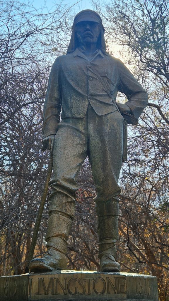 Two-thirds of Victoria Falls can be viewed from the Zimbabwean side, and the entrance fee reflects that (50 US$). I began my visit at the statue of the first European to see this natural wonder in 1855, Dr. David Livingstone. He named the falls after Queen Victoria of Britain. Locally, they are known as Mosi-oa-Tunya, meaning “The Smoke That Thunders.”